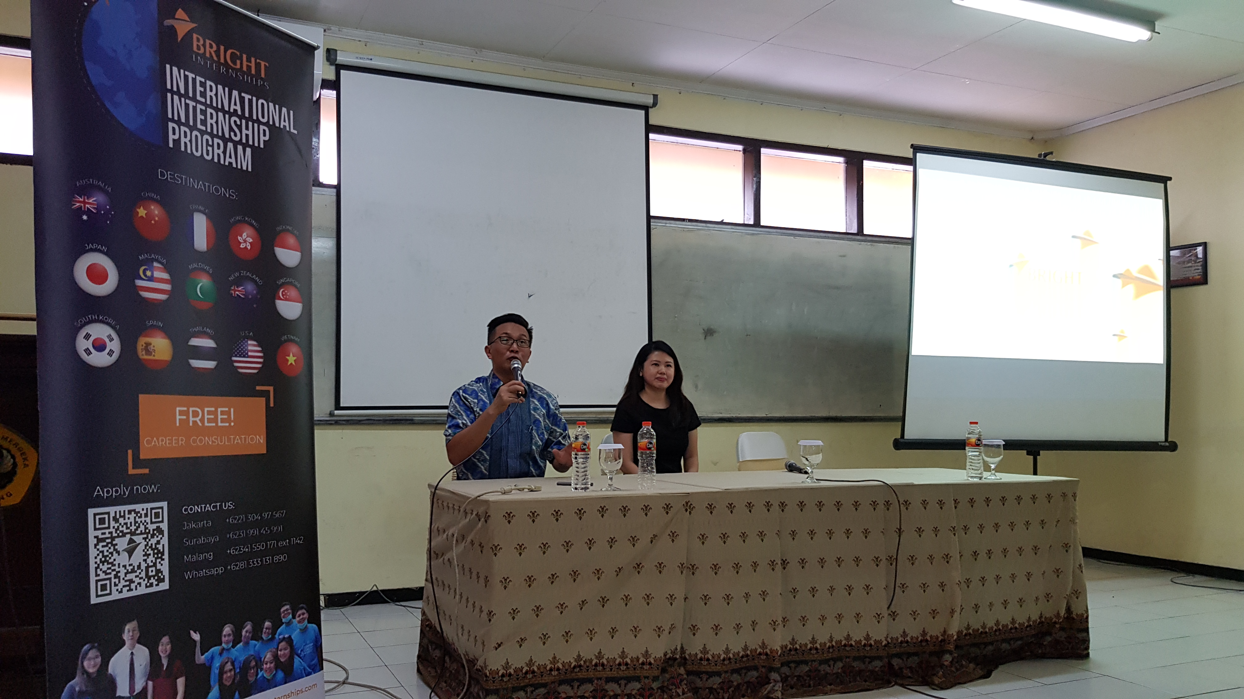 On Friday, December 20th, 2019 Bright Internships team has the privilege to visit and give info session at Universitas Merdeka Malang. It’s our very first time to be at Universitas Merdeka Malang (Unmer) and we really love it. With the help from Prof. Widji as the head of the faculty of tourism Universitas Merdeka Malang, we shared more information about hospitality internship. Not forget to mention all the laughters and happy time we had during the info session. We had laugh over some jokes, shared the internship plans and dreams, and had a chance to know more about each other. The most important is, the students now know all kinds of intenational programs, including the internship abroad.