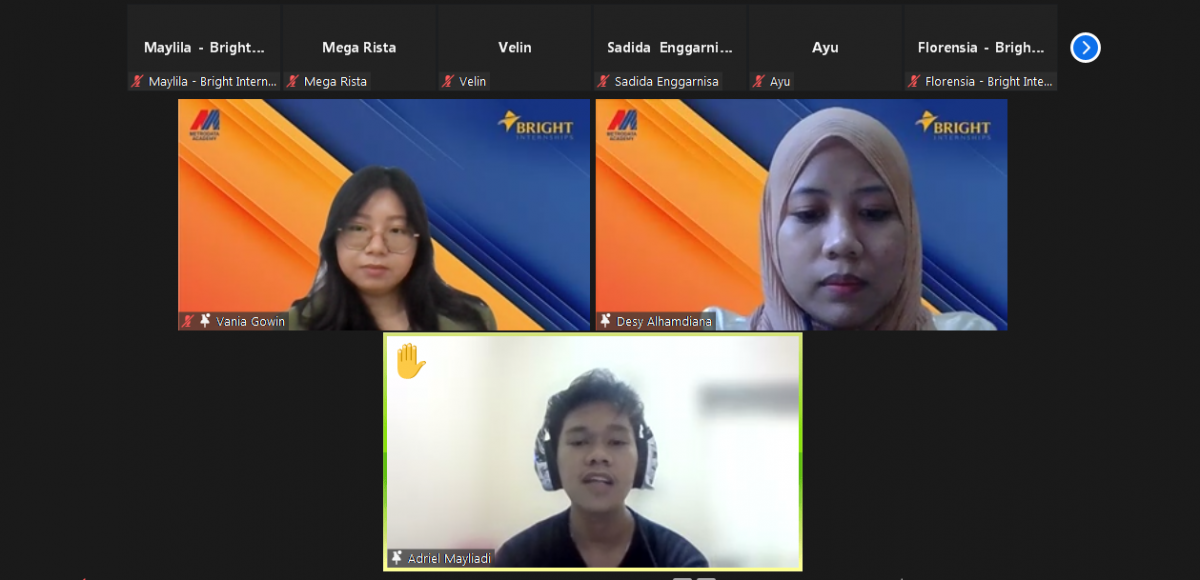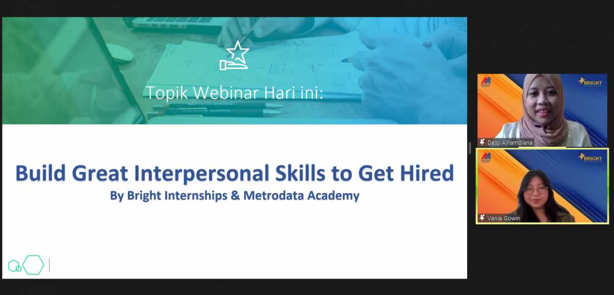 Webinar “Build Great Interpersonal Skills to Get Hired” Bright Internships bersama Metrodata Academy sukses diselenggarakan dengan antusiasme tinggi audience. Tujuan dari kegiatan webinar ini tidak lain untuk memberikan berbagai wawasan dan tips terkait bagaimana membangun dan mengembangkan interpersonal skills dalam dunia kerja.