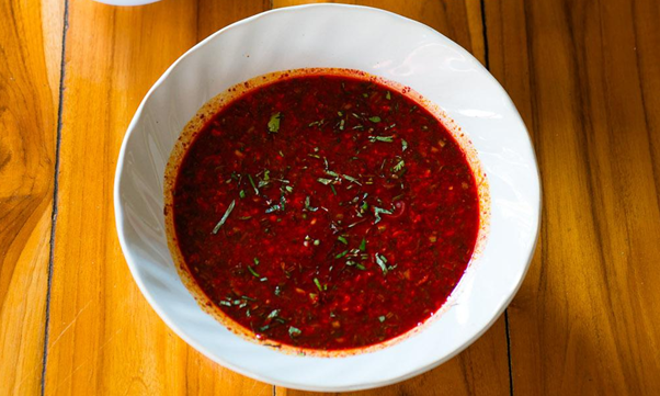If you have a weak stomach, this Bangkok extreme food is probably not for you. The dish refers to the action acquired when the live freshwater tiny shrimps are sprayed with lime juice to sour them up before you eat them. The acid burns their skin. And likely, the shrimps still jump and bounce in your mouth until they die. Prior to serving, the shrimps are seasoned with chili, fish sauce, and lots of herbs like coordinator, red onion, parsley.
